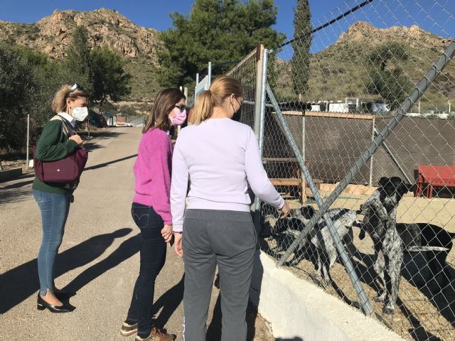 La alcaldesa de Águilas, Mari Carmen Moreno, la edil de Sanidad, María Dolores García, y el veterinario municipal, Manuel Sansegundo, han visitado las instalaciones de Aguiproan, asociación sin ánimo de lucro cuyo objetivo principal es la protección y defensa de los animales.