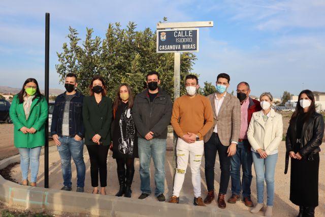 El aguileño Isidoro Casanova Miras cuenta desde el pasado fin de semana con una calle en la localidad que fue inaugurada por la alcaldesa de Águilas, Mari Carmen Moreno, junto a varios miembros de la corporación municipal y un gran número de amigos y familiares del que fuera promotor principal de la urbanización La Florida.