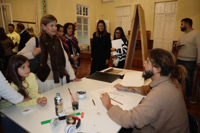 El acto inaugural contó, además de con el propio autor, encargado de realizar diferentes obras en vivo, con la presencia la alcaldesa de Águilas, Mari Carmen Moreno, la edil de Cultura, Maido Simó, y el presidente de Afemac, Felipe Soler.