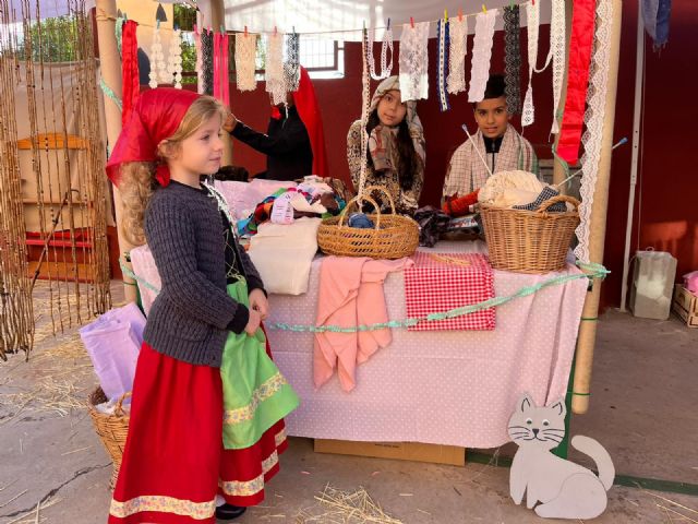 Puestos de frutas y verduras, pescadería, carnicería, espartería tradicional aguileña (con la colaboración de la "Asociación Amigos del Esparto"), herreros, pescadores, quesería, panadería, costureras, alfareros, posada, pastorcillos, castillo de Herodes, Portal de Belén…inundaron el colegio para disfrutar de una jornada diferente y divertida. La actividad contó con la presencia de la concejala de Educación, Francis Gallego, y la edil de Igualdad, Elena Casado.
