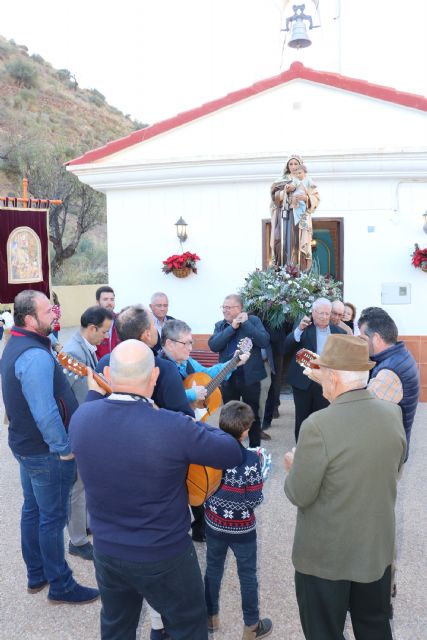 La pedanía aguileña de la Cuesta de Gos celebró, un año más, su tradicional fiesta de Navidad. Un evento que dio comienzo con una misa celebrada en la ermita de este coto minero tras la cual la Virgen salió en procesión acompañada de numerosos vecinos de la zona, así como de diferentes miembros de la corporación municipal entre los que se encontraba la alcaldesa de Águilas, Mari Carmen Moreno, y el edil de Agricultura, Bartolo Hernández. Como viene siendo habitual antes de que la imagen de la Virgen procesionara por los montes de esta pedanía aguileña se procedió a la subasta de la propia imagen y del estandarte, un simbólico acto que se ha mantenido inalterado a lo largo de los años.