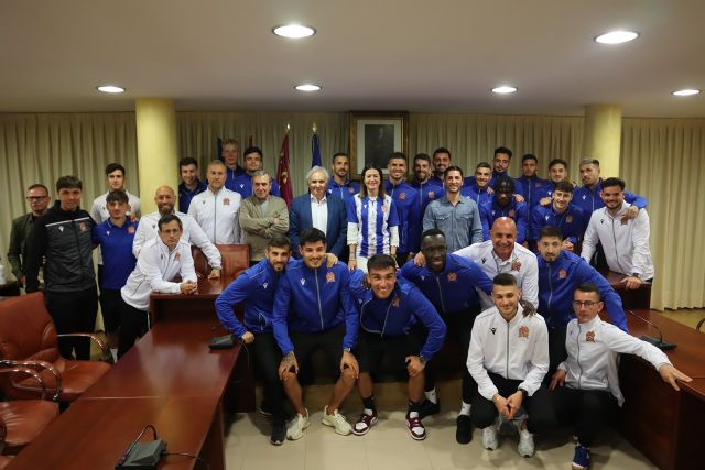 En la tarde de ayer, la alcaldesa de Águilas, Mari Carmen Moreno, junto al concejal de Deportes, Cristóbal Casado, recibió en el salón de Plenos del Ayuntamiento a los jugadores del Águilas FC, así como al equipo técnico y a su presidente Alfonso García, tras ascender a 2 división.