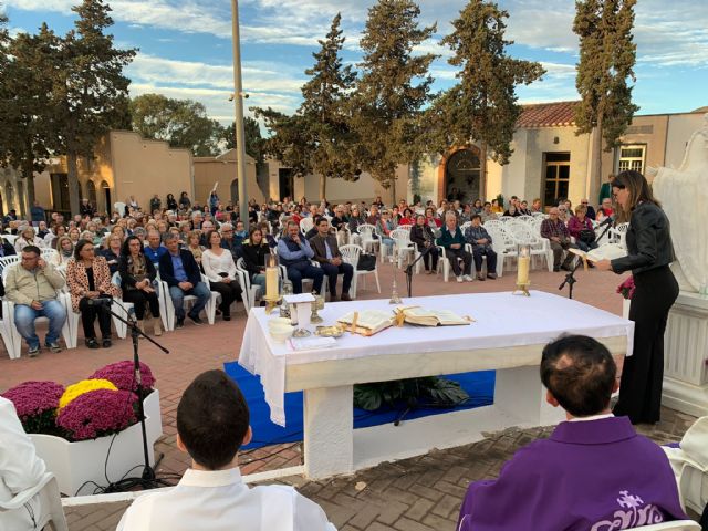 Coincidiendo con el Día de los Fieles Difuntos, el cementerio municipal ha acogido un oficio religioso en el que han estado presentes la alcaldesa, Mari Carmen Moreno, y la edil de Cementerios, Isabel Fernández, así como otros miembros de la Corporación Municipal.
