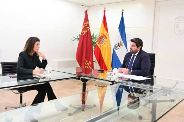 Fernando López Miras y María del Carmen Moreno también analizaron temas como la puesta en valor del puerto de Águilas, un proyecto en el que la Comunidad ha mostrado su disposición a crear una mesa de trabajo en la que participen todos los agentes interesados. Igualmente, se abordaron asuntos como la mejora de carreteras del municipio, para lo que el Gobierno regional tiene consignados 1,5 millones de euros este año, o el impulso de la Formación Profesional en Águilas.