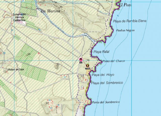 Operativo del Plan Infomur, de lucha contra los incendios forestales en la Región de Murcia, ha sido movilizado para apagar un incendio forestal declarado junto a la playa del Charco de Águilas.