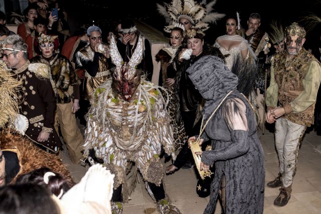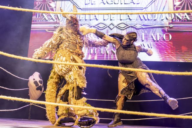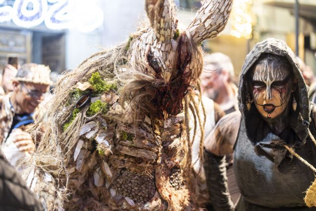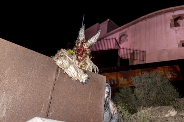 Metida en la piel de un canguro, Julia Parra, de la peña El Tangay y de la peña de la noche Las Siniestras, se convertía ayer en una Mussona que será muy difícil olvidar. Julia Parra daba vida a este ancestral personaje y lo hacía en un espectacular descenso desde el Castillo de San Juan de las Águilas en el que no cesó ni un segundo de asustar a cuantos la rodearon, trepando, atacando a adultos y niños, colándose incluso en alguna casa, guiada por el sonido del pandero de su domadora, Mar Muñoz, Mussona del 2.024.