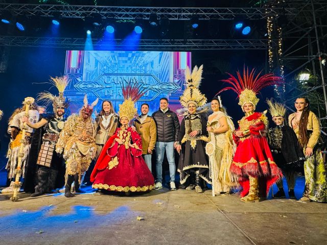 Ya en la Glorieta, y tras ser calmada por el sonido de las caracolas que marcaban los Amigos de las Tradiciones, era recibida por la alcaldesa de Águilas, Mari Carmen Moreno, y el edil de Carnaval. Cristóbal Casado, quienes daban la bienvenida oficial al Carnaval.
