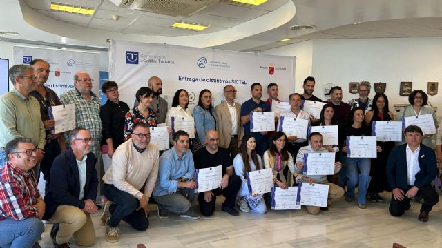 Los reconocimientos han sido entregados por la Directora General de Competitividad y Calidad Turística, Dña. Eva Reverte Hernández, y el Concejal de Dinamización Social e Inclusión, Educación, Cultura y Patrimonio Cultural y Turismo del Ayuntamiento de Águilas, D. José Antonio Consentino López, quienes han felicitado a los galardonados por su implicación en la mejora continua de la experiencia turística en el municipio.