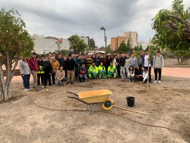 Alumnado de 4° ESO, Ciclo Medio de Informática y Aula abierta y profesorado del IES Europa, en colaboración con las concejalías de Zonas Verdes y de Educación Ambiental y el Servicio de parques y jardines han plantado 109 árboles y arbustos en el parque situado tras la zona comercial de Los Jardines.