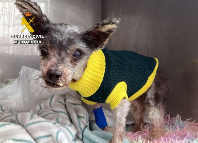 La Guardia Civil de la Región de Murcia, en el marco de campaña contra el maltrato y abandono de animales domésticos #YoSiPuedoContarlo# y gracias a la colaboración ciudadana, ha desarrollado una investiación en Águilas, que ha permitido esclarecer un caso de maltrato animal y que ha culminado con la investigación de un vecino del municipio al que se le ha instruido diligencias como presunto autor de delito contra los animales y la retirada del can, que se encontraba en pésimas condiciones higiénicas y sanitarias, que ha tenido que recibir cuidados veterinarios con carácter urgente.