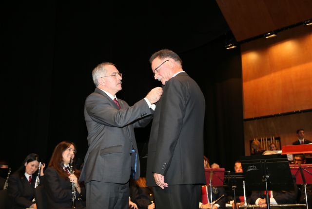 El jefe del Ejecutivo local, Bartolomé Hernández, entregró la distinción de Hijo Adoptivo de Águilas a Juan Rojo, director de la banda titular y de la escuela de música del Patronato Musical Aguileño