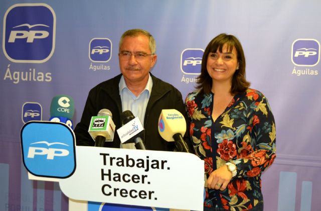 Ha ofrecido una rueda de prensa, fin de campaña, junto a la candidata aguileña a la Asamblea Regional y número dos de la lista electoral del PP en Águilas, Isabel María Soler